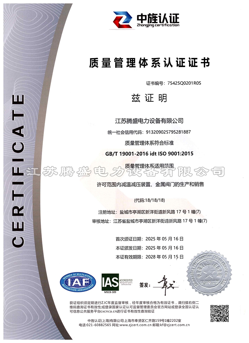 质量管理体系认证证书